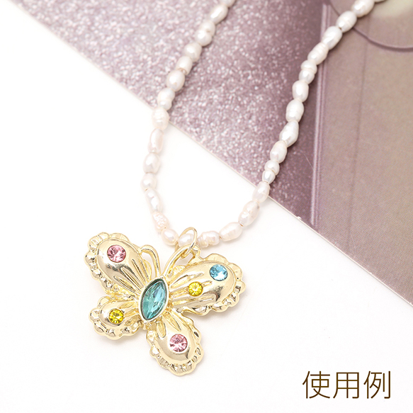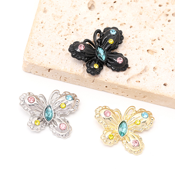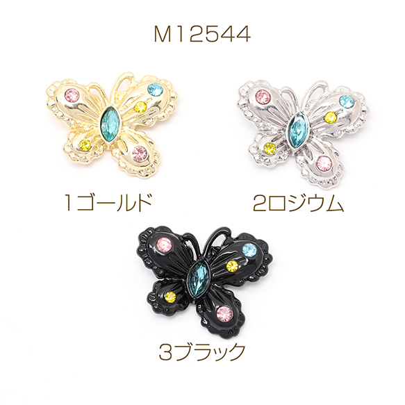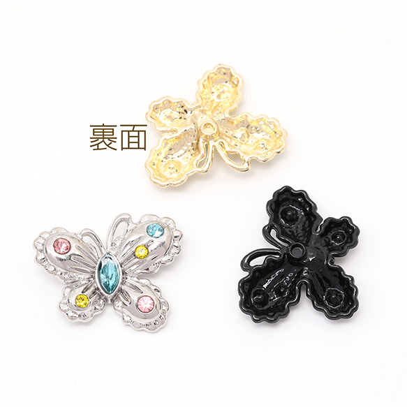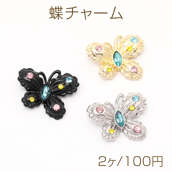 立体蝶チャーム バタフライチャーム メタルチャーム ガラスストーン付き カン付き 19×23.5mm(2ヶ)