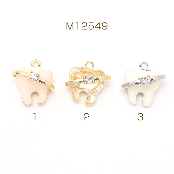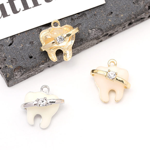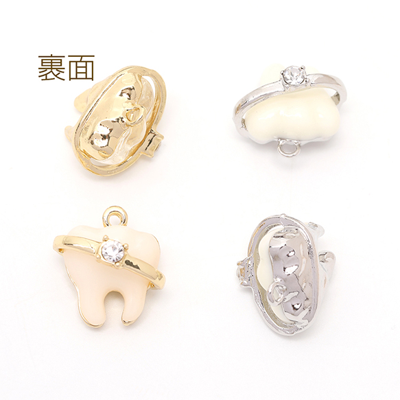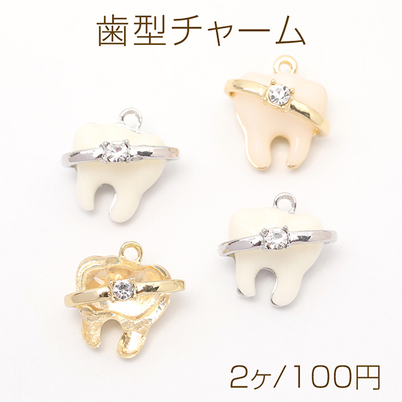 歯型チャーム メタルチャーム 樹脂ストーン付き カン付き 18×19mm