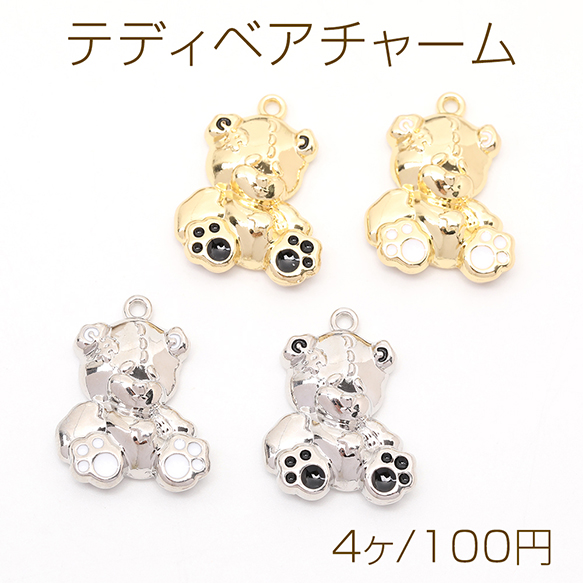 テディベアチャーム 立体くまチャーム メタルチャーム エポ付き カン付き(4ヶ)