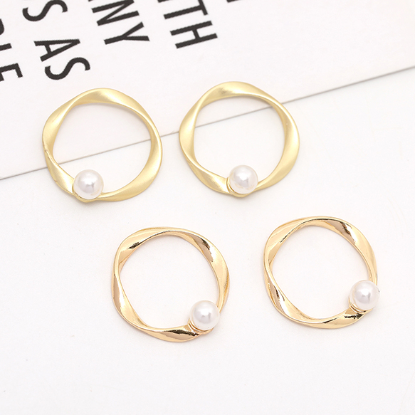 メタルフレームパーツ ひねり ラウンド パール付き 16×17mm(6ヶ)