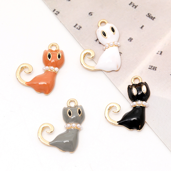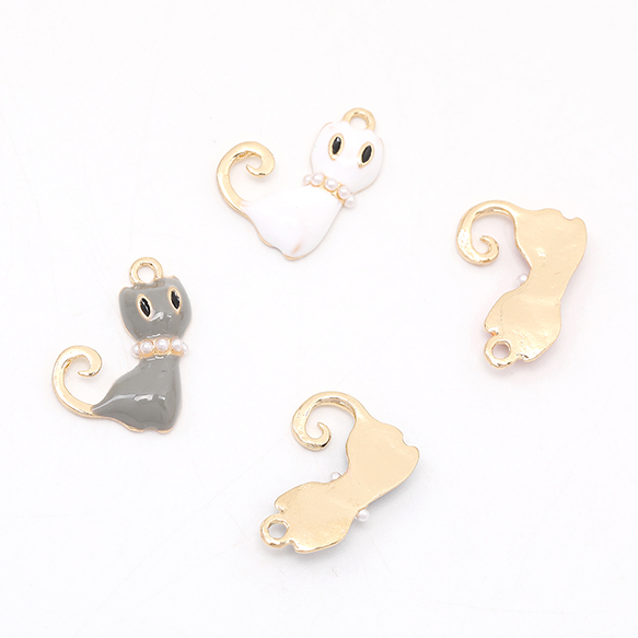 エポチャーム 立体猫チャーム カン付き ゴールド 11×16mm(4ヶ)