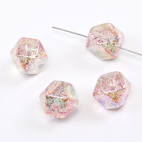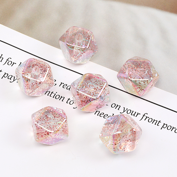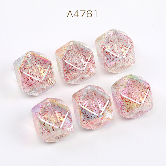 アクリルビーズ ラメ入り キューブ多面カット 通し穴あり ピンク 14×15.5mm(4ヶ)