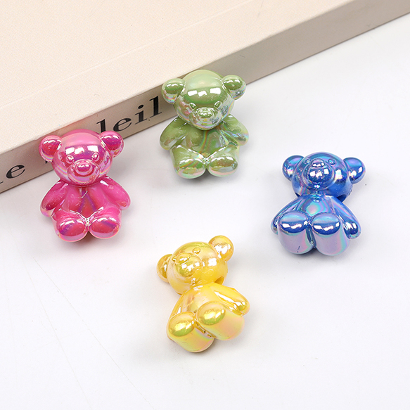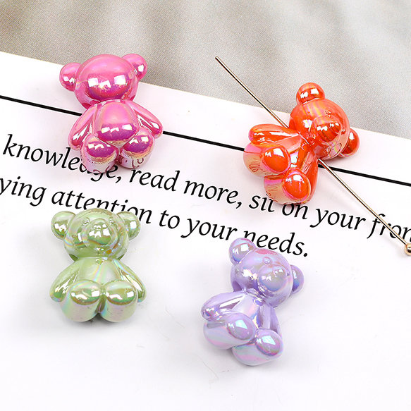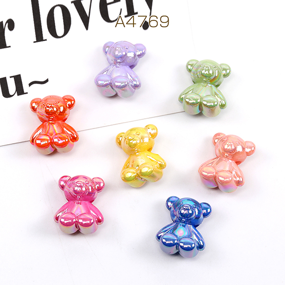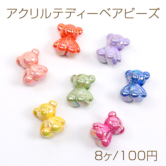 アクリルビーズ テディーベア 横穴 オーロラ加工 ミックスカラー 15.5×18.5mm(8ヶ)