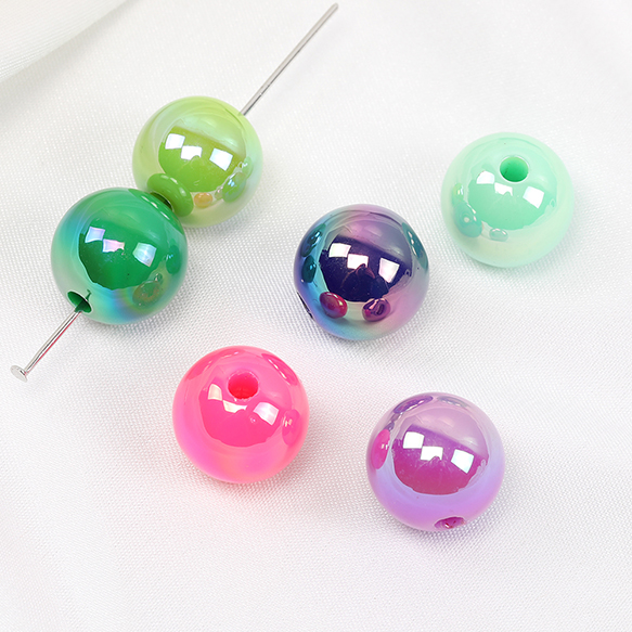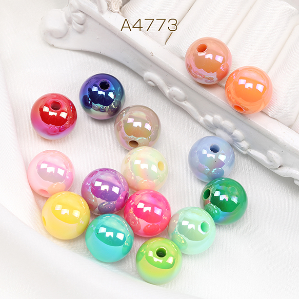 アクリルビーズ 丸玉 通し穴あり オーロラ加工 ミックスカラー 14mm(8ヶ)