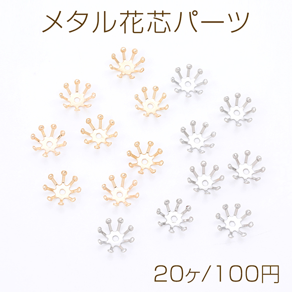 メタル花芯パーツ 花座 座金 ビーズキャップ 10mm(20ヶ)