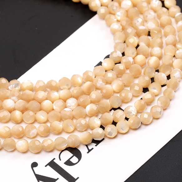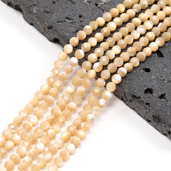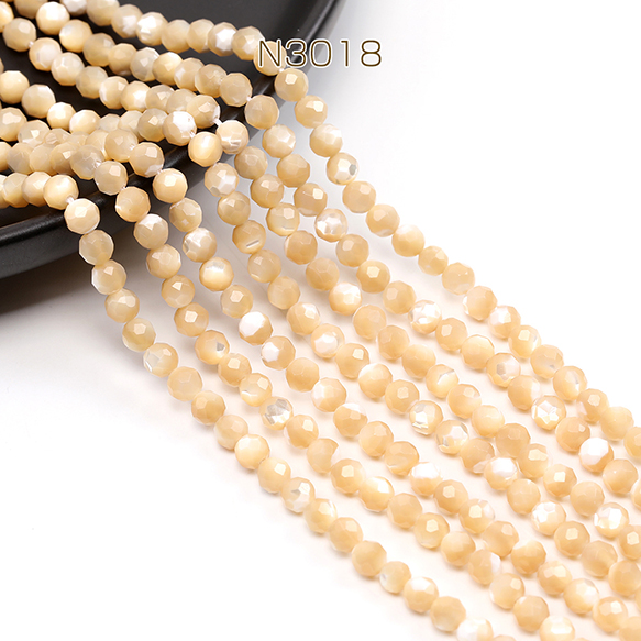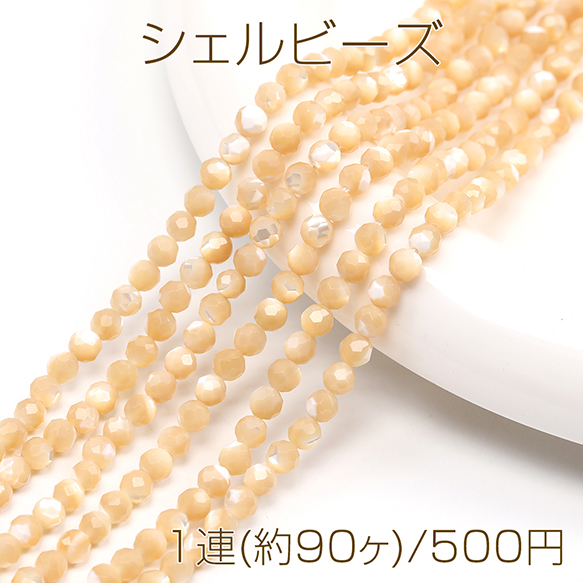 シェルビーズ ベージュ ラウンドカット 通し穴あり 4mm 1連(約90ヶ)