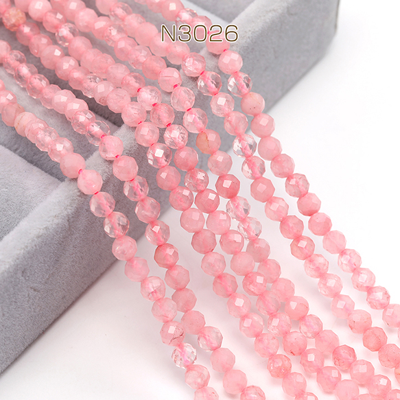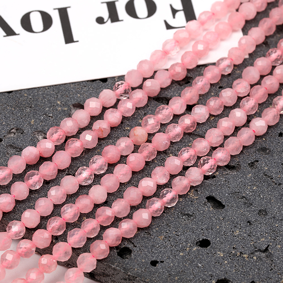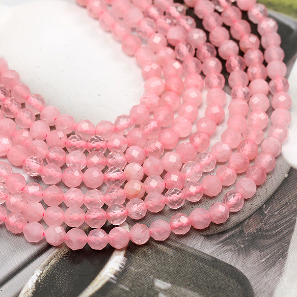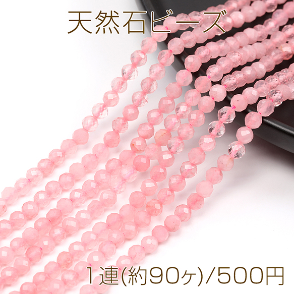 天然石ビーズ ローズクォーツ ラウンドカット 通し穴あり 4mm 1連(約90ヶ)