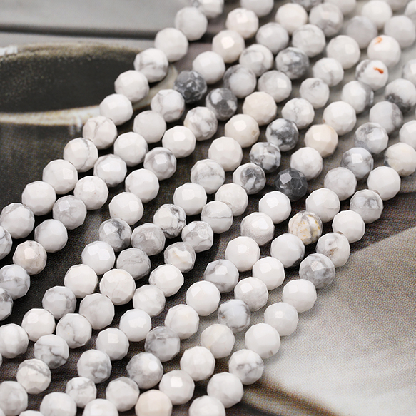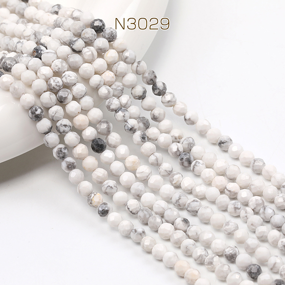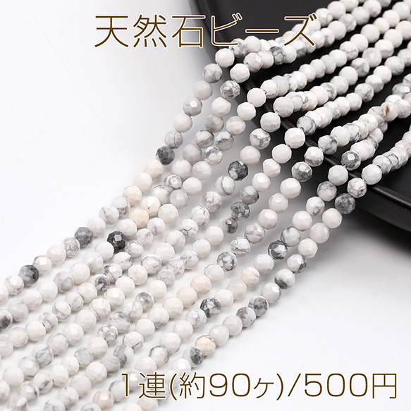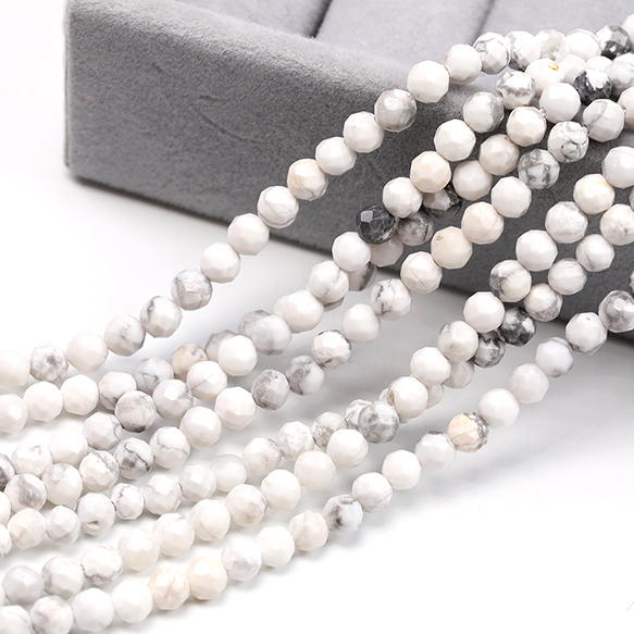 天然石ビーズ ハウライト ラウンドカット 通し穴あり 4mm 1連(約90ヶ)