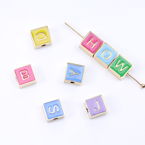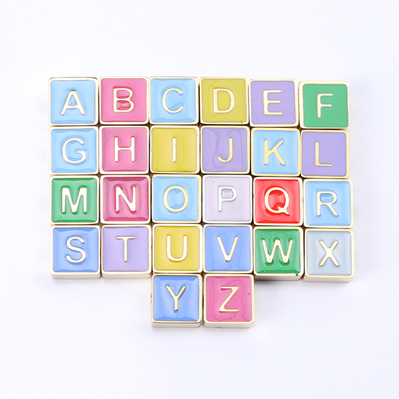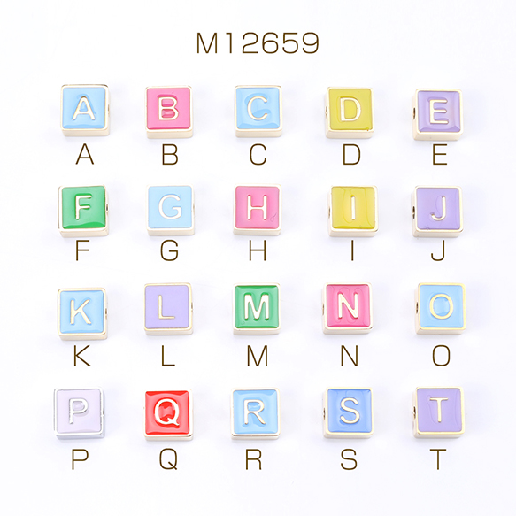 アルファベットキューブビーズ ステンレス製 パステルカラー 通し穴あり 4×8mm