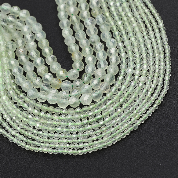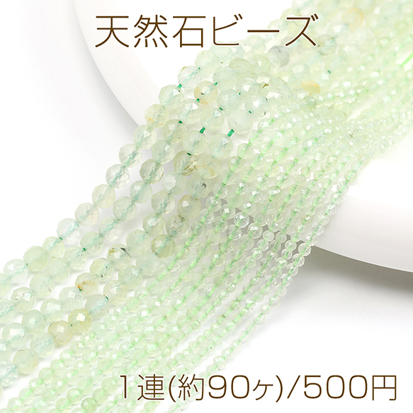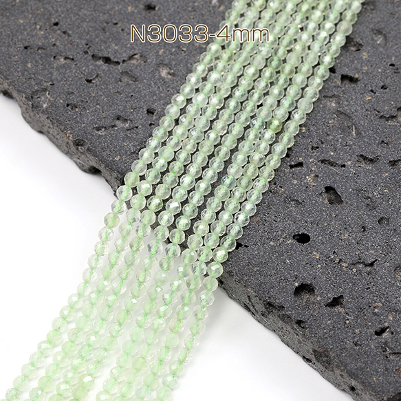 天然石ビーズ 連売り プレナイト ラウンドカット 通し穴あり 4mm 1連(約90ヶ)