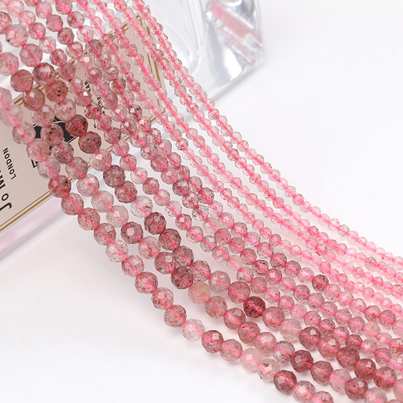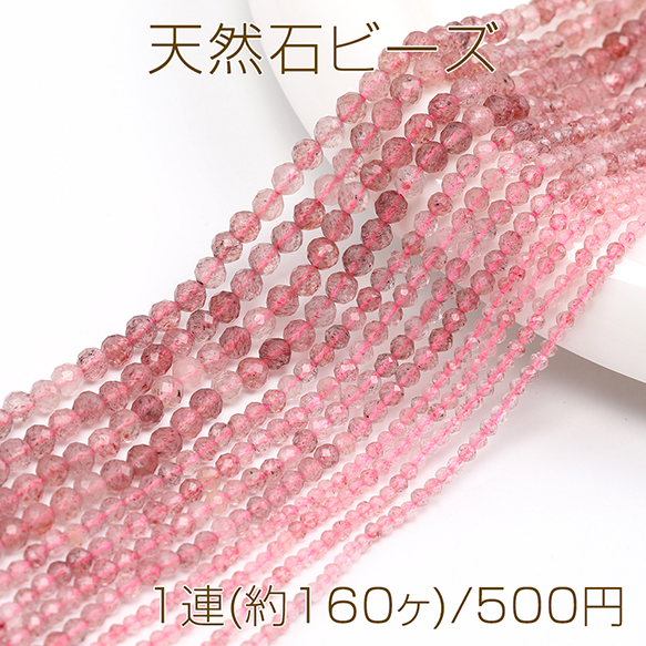 天然石ビーズ 連売り ストロベリークォーツ ラウンドカット 通し穴あり 2mm 1連(約160ヶ)