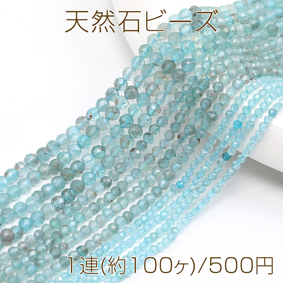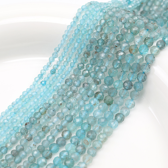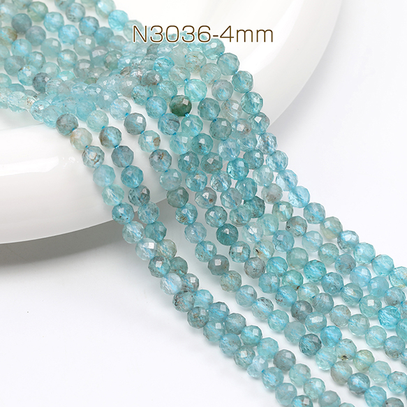 天然石ビーズ 連売り アパタイト ラウンドカット 通し穴あり 4mm 1連(約100ヶ)