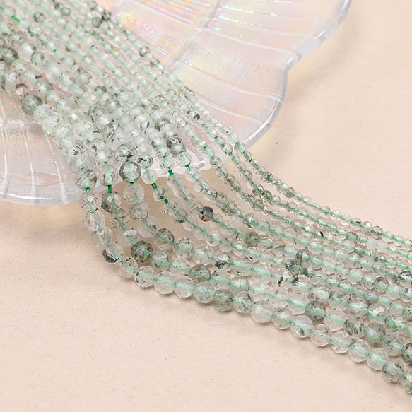天然石ビーズ 連売り グリーンファントム ラウンドカット 通し穴あり 4mm 1連(約95ヶ)