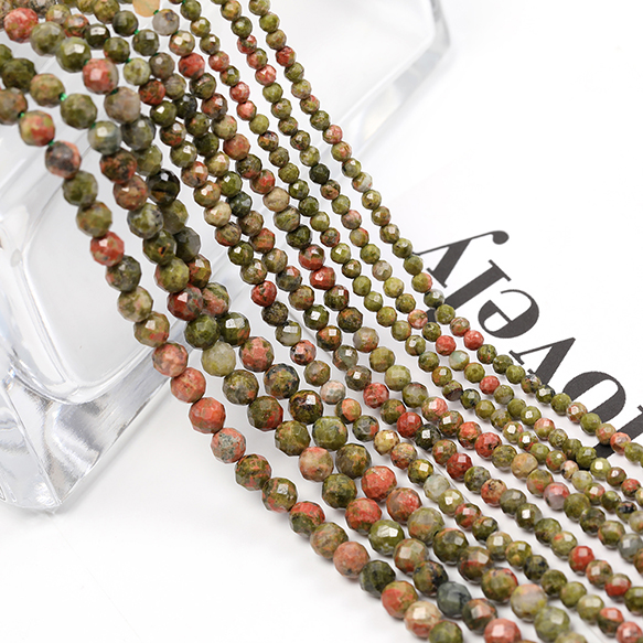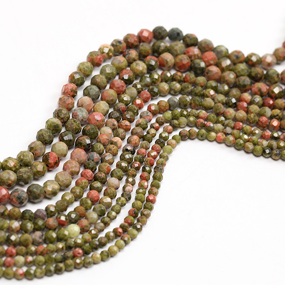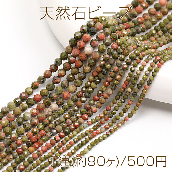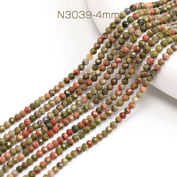 天然石ビーズ 連売り ユナカイト ラウンドカット 通し穴あり 4mm 1連(約90ヶ)