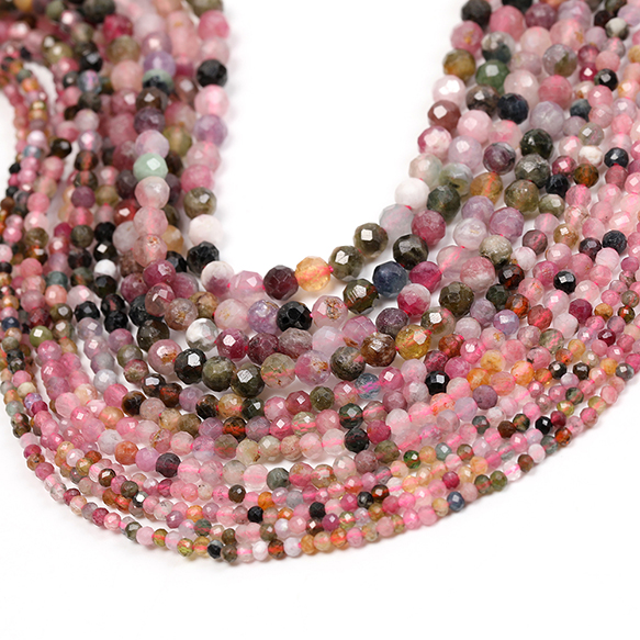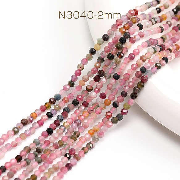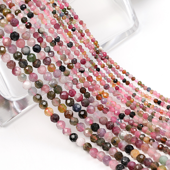 天然石ビーズ 連売り トルマリン ラウンドカット 通し穴あり 2mm 1連(約160ヶ)