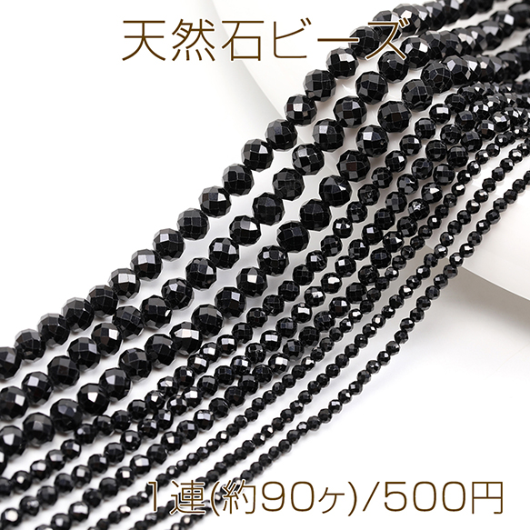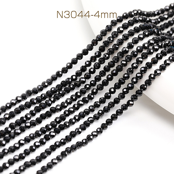 天然石ビーズ 連売り ブラックオニキス ラウンドカット 通し穴あり 4mm 1連(約90ヶ)