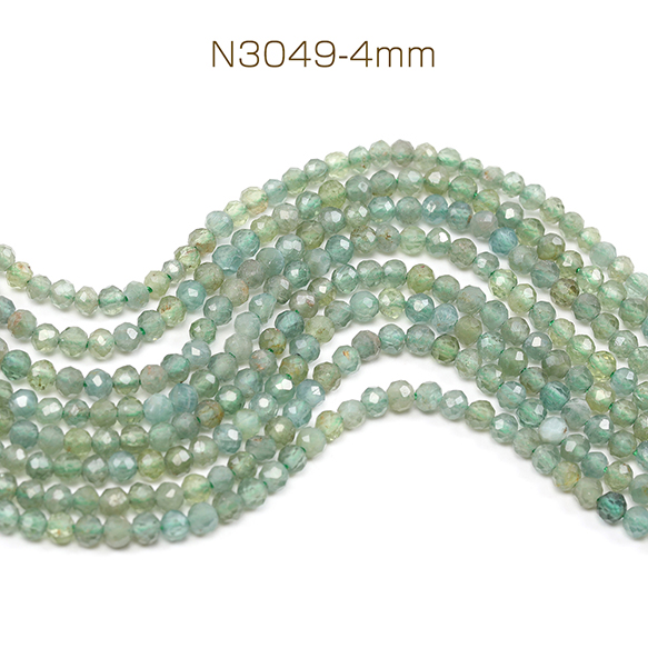 天然石ビーズ 連売り グリーンアパタイト ラウンドカット 通し穴あり 4mm 1連(約90ヶ)