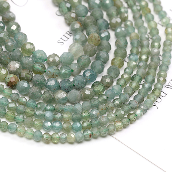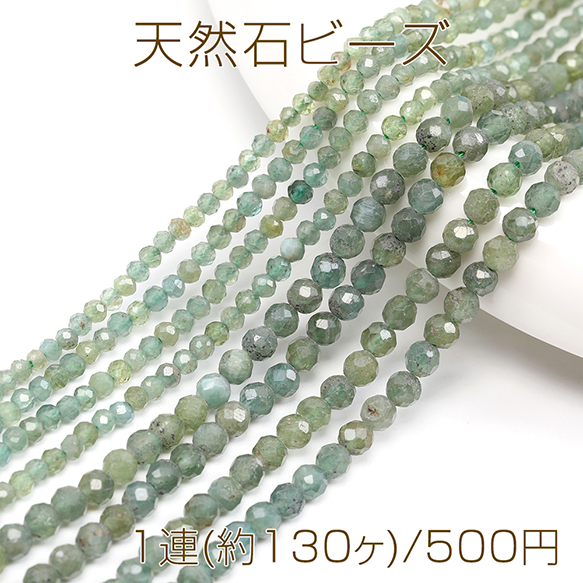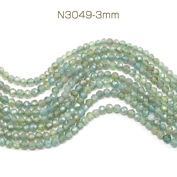 天然石ビーズ 連売り グリーンアパタイト ラウンドカット 通し穴あり 3mm 1連(約130ヶ)