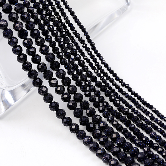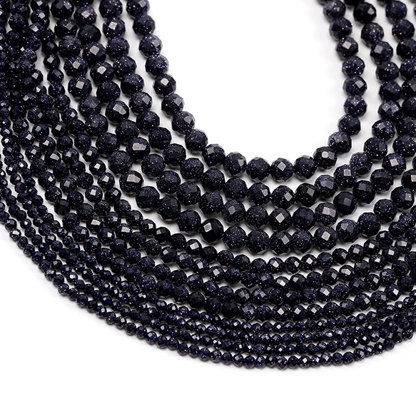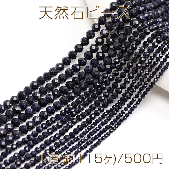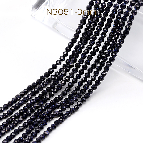 天然石ビーズ 連売り ブルーゴールドストーン ラウンドカット 通し穴あり 3mm 1連(約115ヶ)