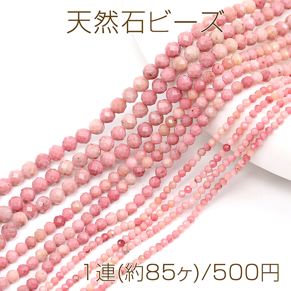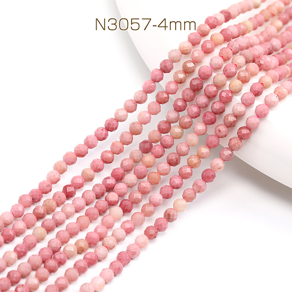 天然石ビーズ 連売り ピンクオパール ラウンドカット 通し穴あり 4mm 1連(約85ヶ)