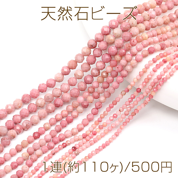 天然石ビーズ 連売り ピンクオパール ラウンドカット 通し穴あり 3mm 1連(約110ヶ)