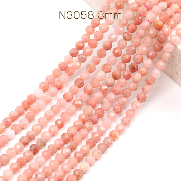 天然石ビーズ 連売り ピンクアベンチュリン ラウンドカット 通し穴あり 3mm 1連(約125ヶ)