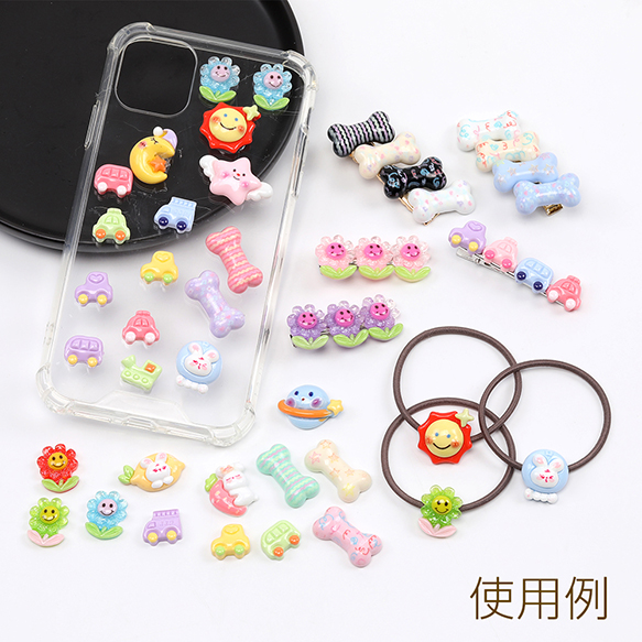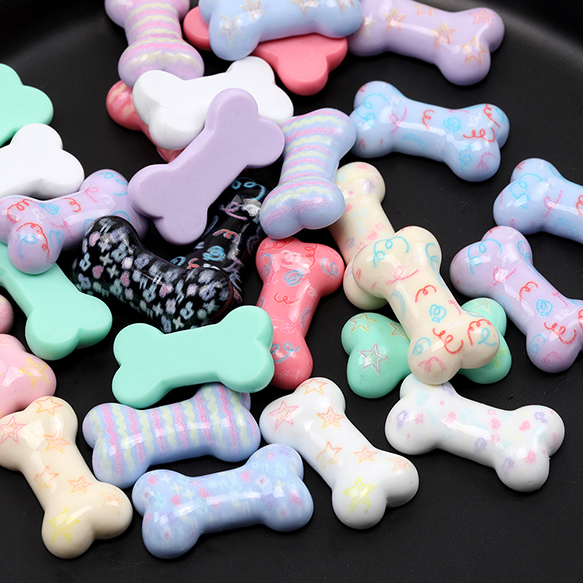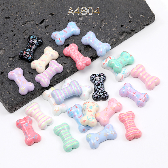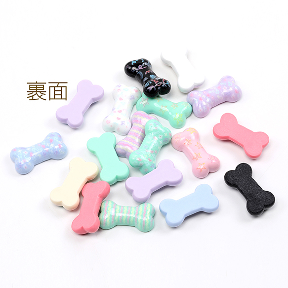 樹脂貼付けパーツ 樹脂カボション 犬の骨 ミックスカラー 13×24mm(20ヶ)