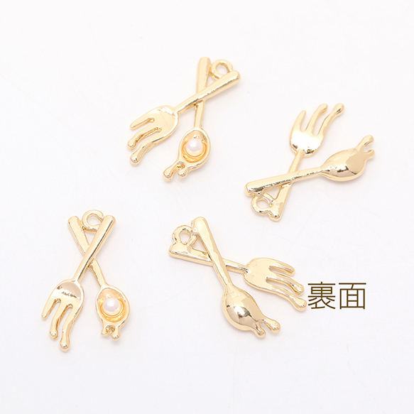 メタルチャーム フォーク スプーン ゴールド 12×20mm(4ヶ)