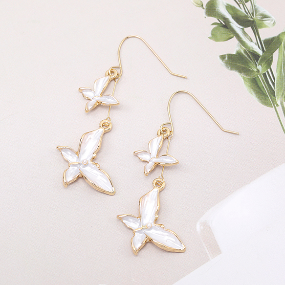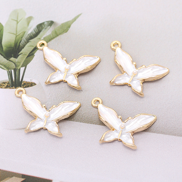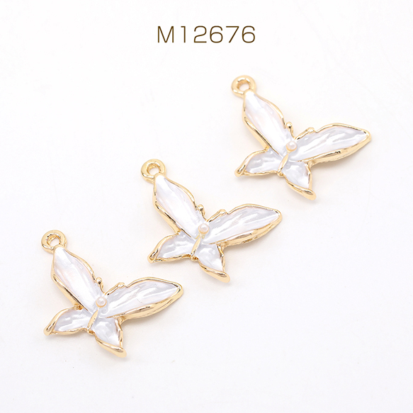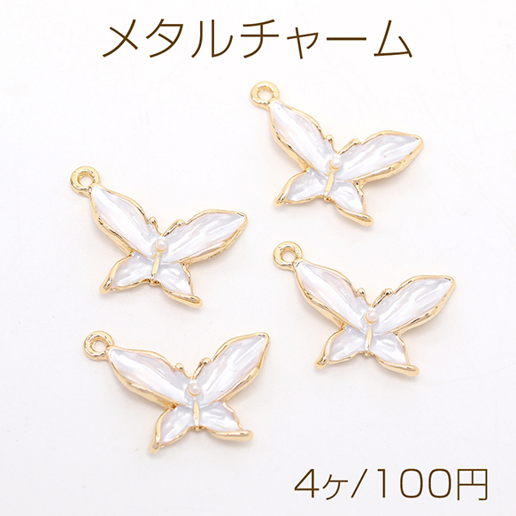 メタルチャーム エポ付き パール付き 蝶 ゴールド 19×22mm(4ヶ)