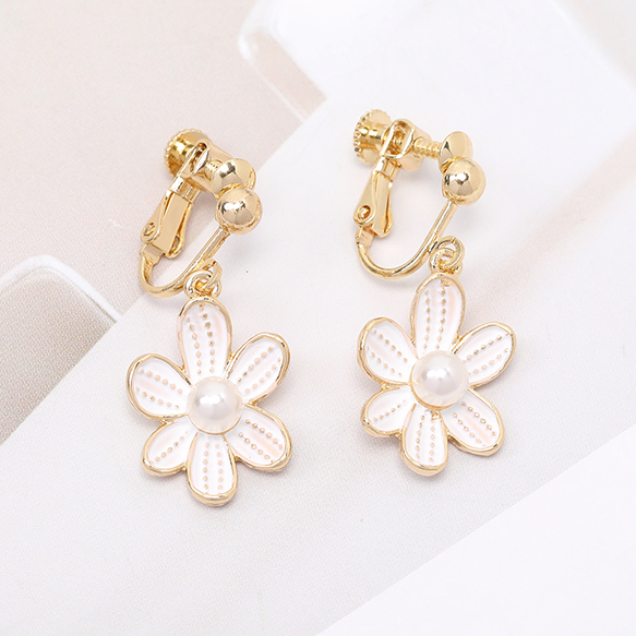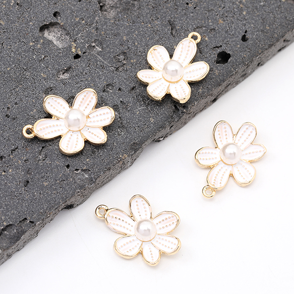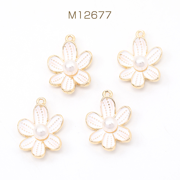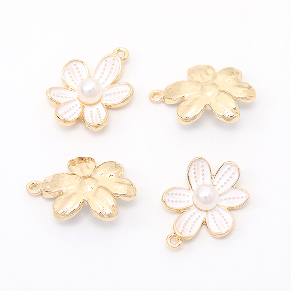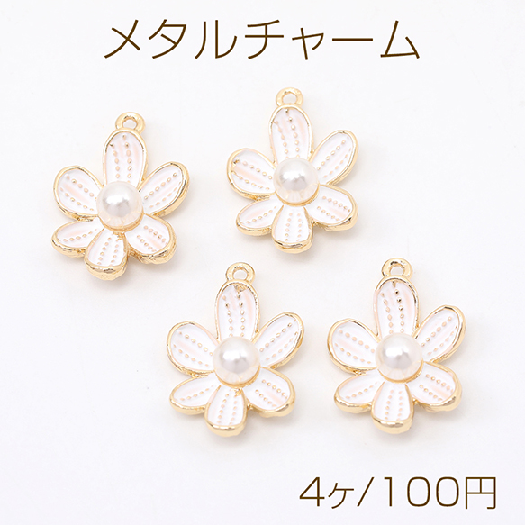 メタルチャーム エポ付き パール付き フラワー ゴールド 14×21mm(4ヶ)