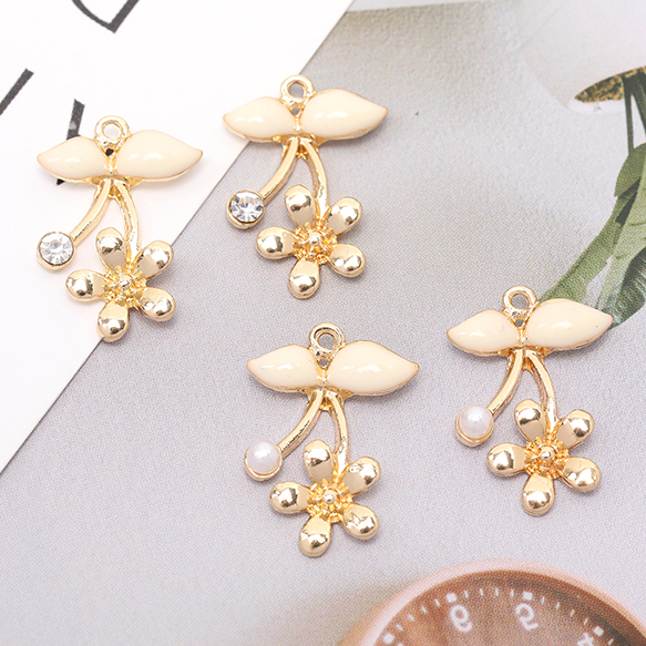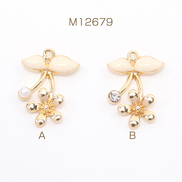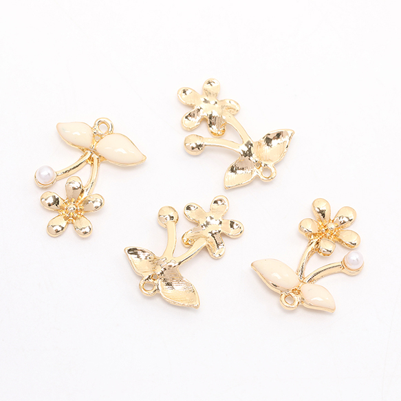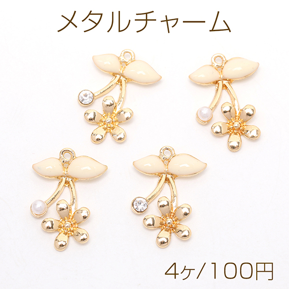 メタルチャーム エポ付き パール付き ラインストーン付き フラワー ゴールド