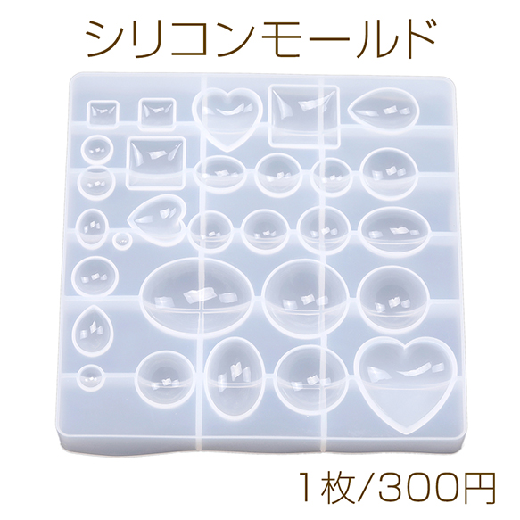 シリコンモールド ソフト ラウンド スクエア オーバル ハート 29種 貼付けタイプ (1枚)
