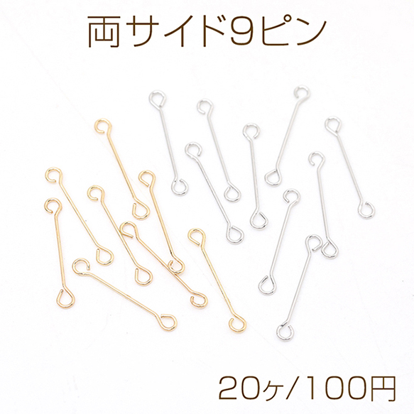 両サイド9ピン 両端カン付き9ピン 両カン付きコネクターパーツ 極細 強度あり 0.3×15mm(20ヶ)