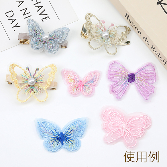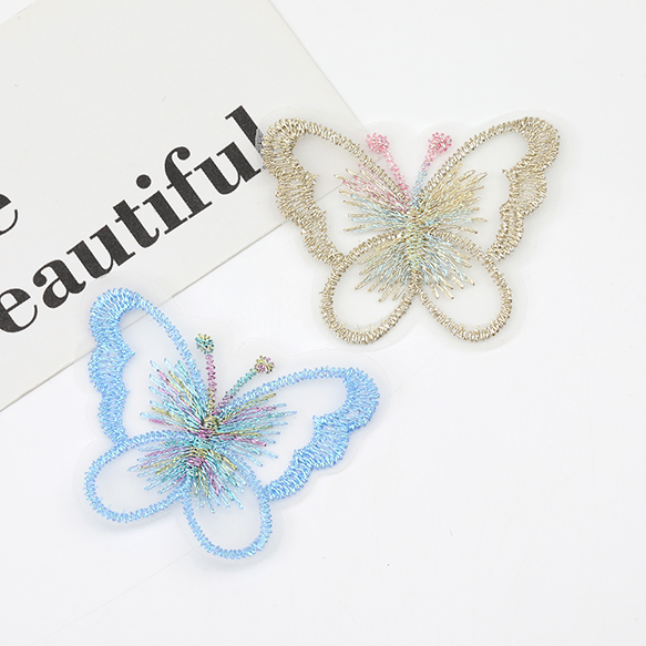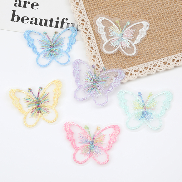 刺繍パーツ 蝶モチーフ 立体刺繍パーツ 手芸刺繍レースパーツ 3.5×4.5cm(6ヶ)