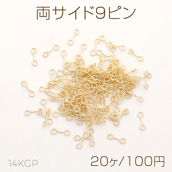 色褪せにくい14KGPゴールドメッキ 両サイド9ピン 両端カン付き9ピン 両カン付きコネクターパーツ 極細 強度あり 0.3×6mm(20ヶ)