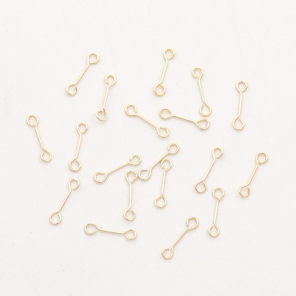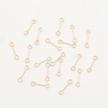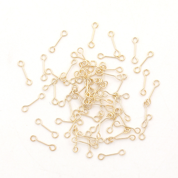 色褪せにくい14KGPゴールドメッキ 両サイド9ピン 両端カン付き9ピン 両カン付きコネクターパーツ 極細 強度あり 0.3×8mm(20ヶ)