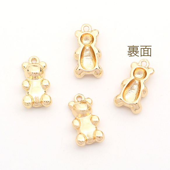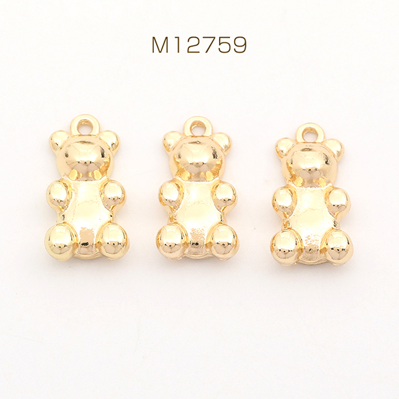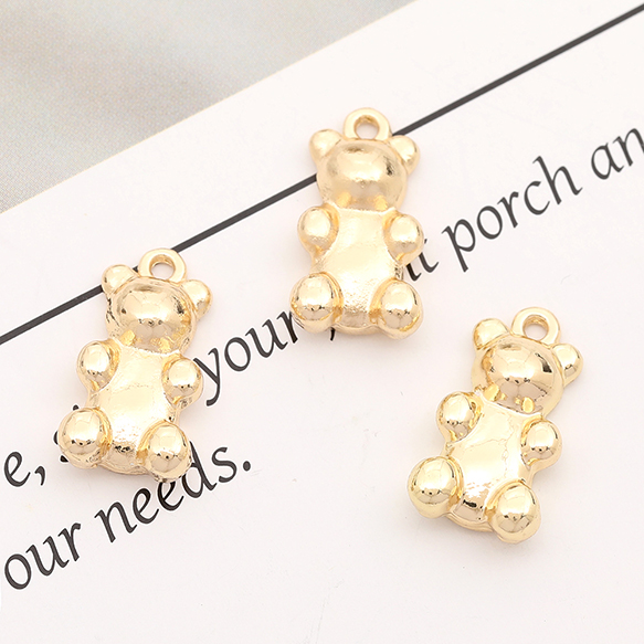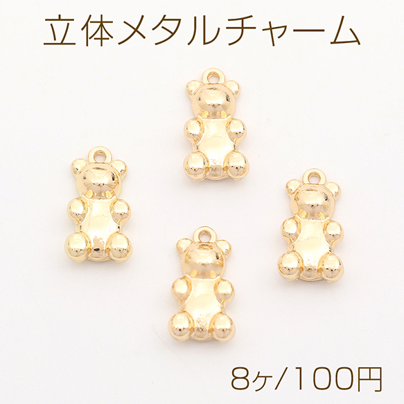 立体メタルチャーム テディベアモチーフ カン付き ゴールド 9×17mm(8ヶ)