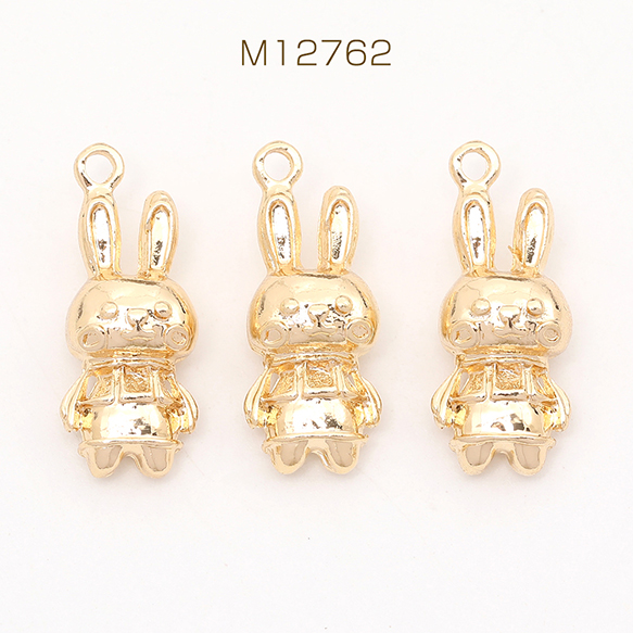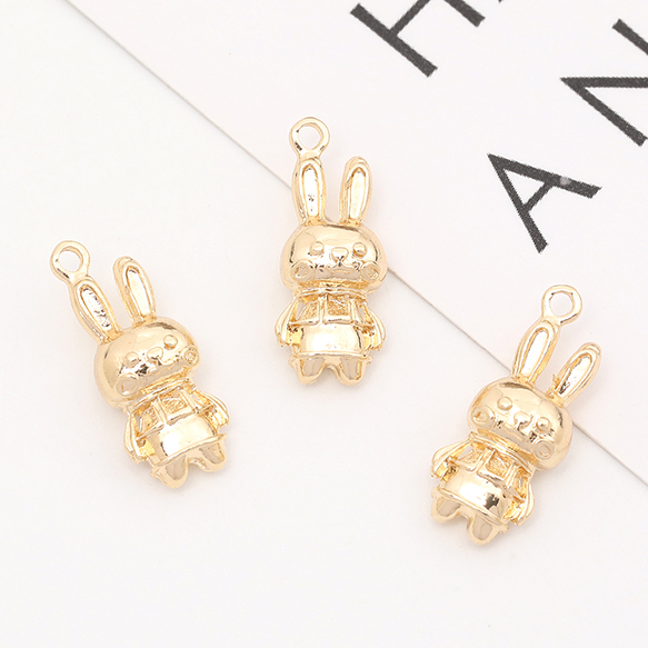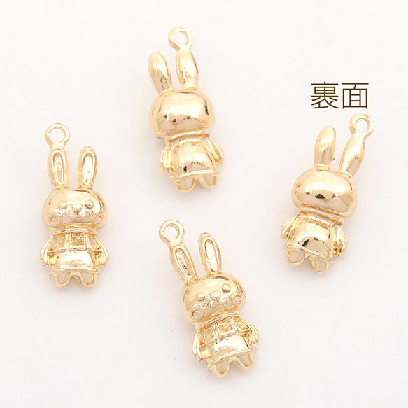 立体メタルチャーム うさぎモチーフ カン付き ゴールド 8×19mm(8ヶ)