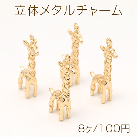 立体メタルチャーム キリンモチーフ カン付き ゴールド 13×23mm(8ヶ)