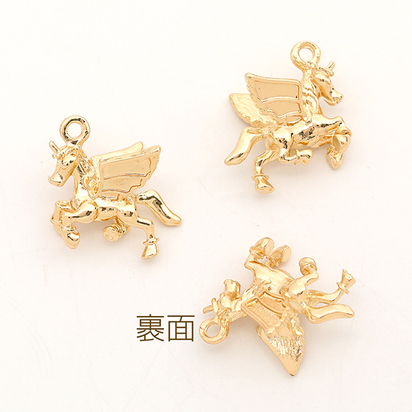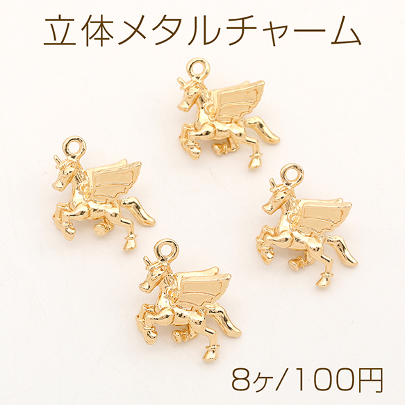 立体メタルチャーム ユニコーンモチーフ カン付き ゴールド 17×20mm(8ヶ)