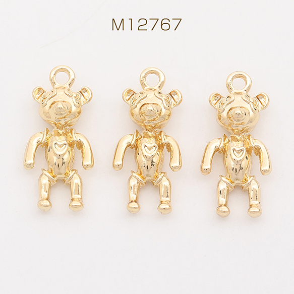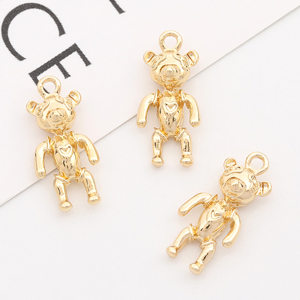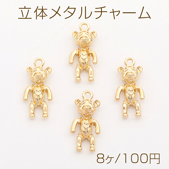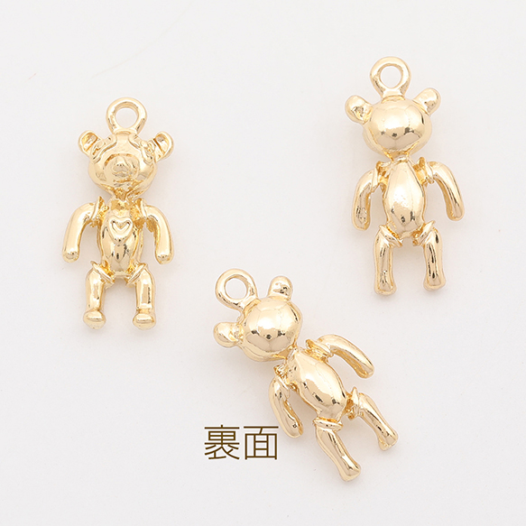 立体メタルチャーム クマ くま カン付き ゴールド 8×18mm(8ヶ)