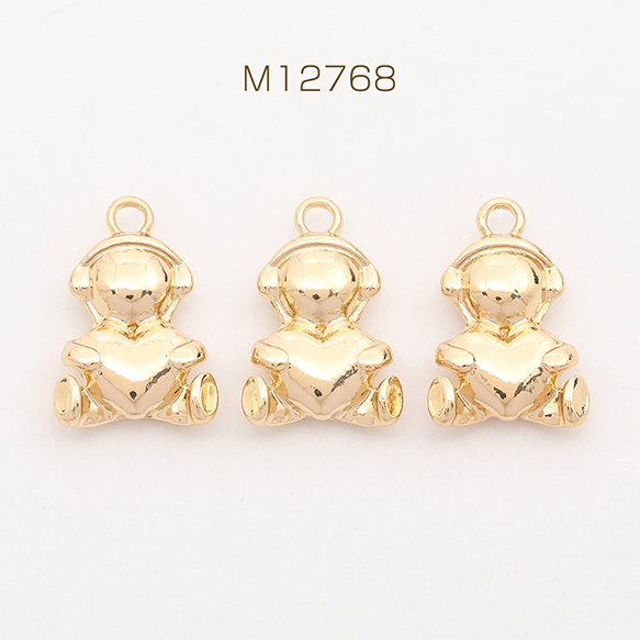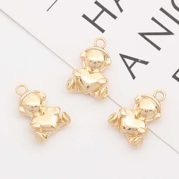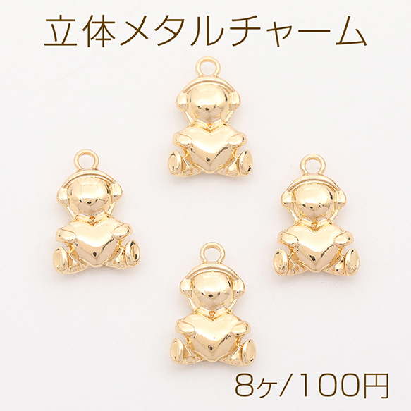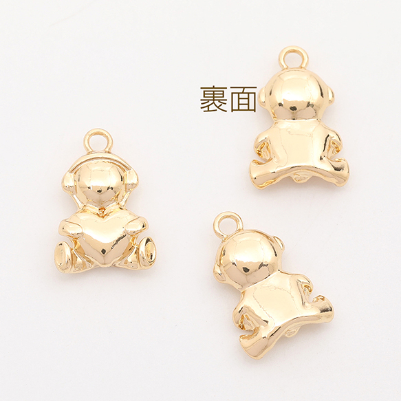 立体メタルチャーム クマ くま カン付き ゴールド 11×17mm(8ヶ)