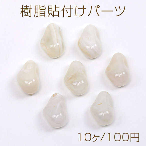 樹脂貼付けパーツ 樹脂カボション 不規則型 マーブルホワイト 11×16mm(10ヶ)