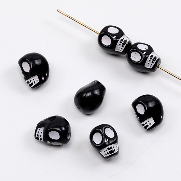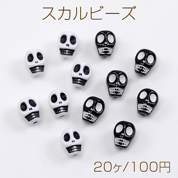 スカルビーズ アンティーク調アクリルビーズ 縦穴 7×9mm(20ヶ)