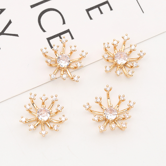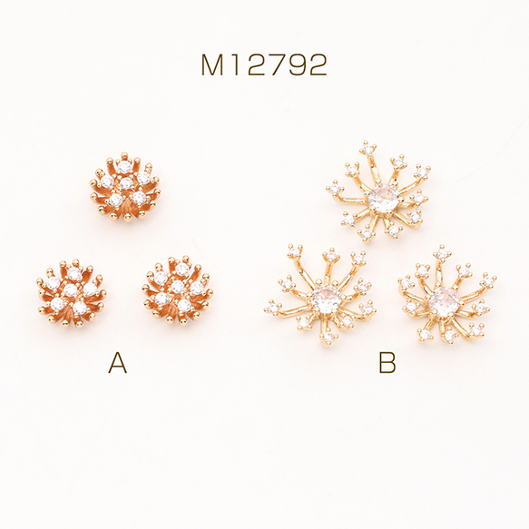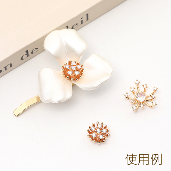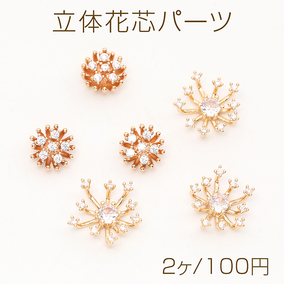 立体花芯パーツ フラワーパーツ 爪立て花座 ジルコニアストーン付き ゴールド 9mm (2ヶ)