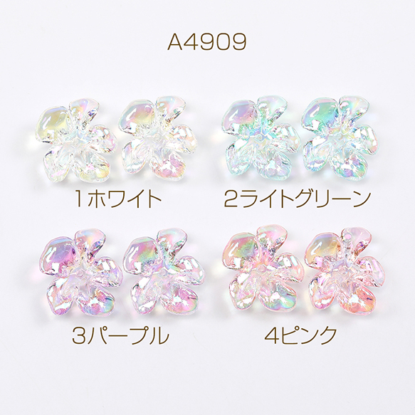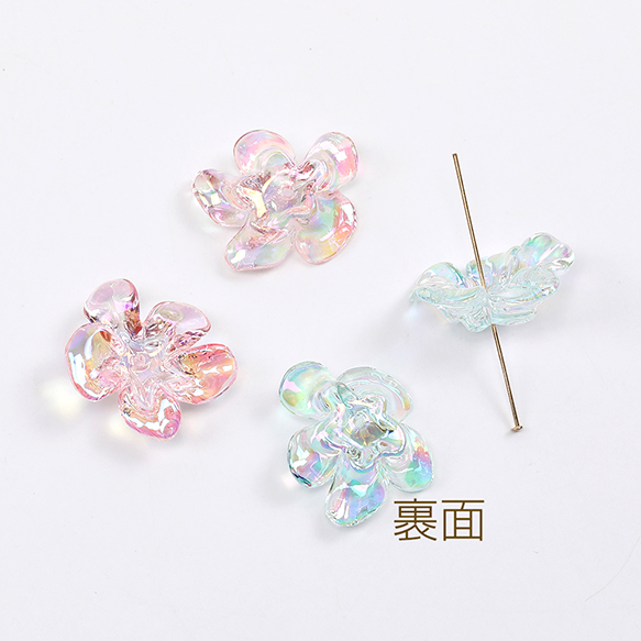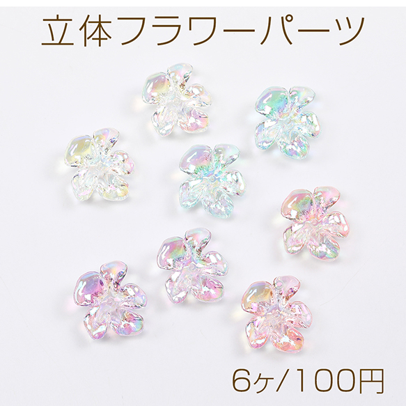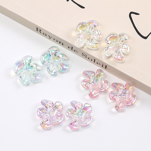 立体フラワーパーツ アクリルビーズキャップ フラワーチャーム 花座 小花パーツ 五弁花 中心穴あり 21×24mm(6ヶ)