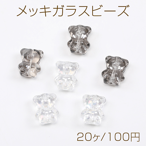 メッキガラスビーズ オーロラ加工ガラスビーズ クマ 12×15mm(20ヶ)