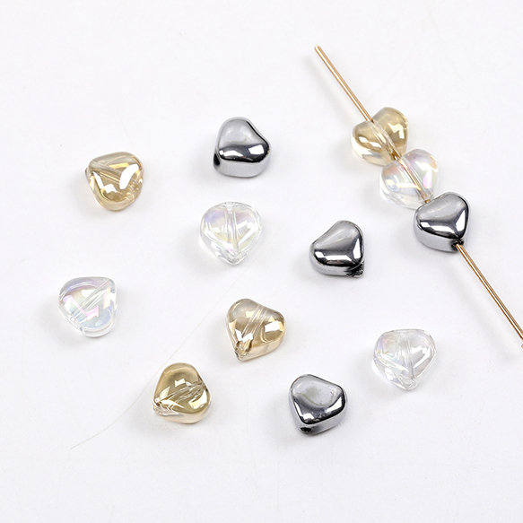 メッキガラスビーズ オーロラ加工ガラスビーズ ハート型 6×6mm(20ヶ)
