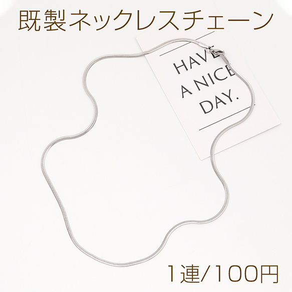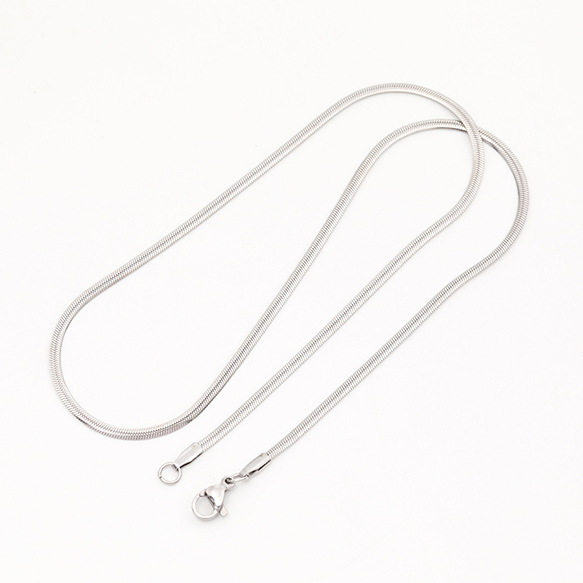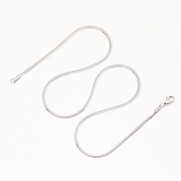 ステンレス製 既製ネックレスチェーン スネークチェーン シルバーカラー 長さ約45cm(1連)