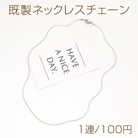 ステンレス製 既製ネックレスチェーン スネークチェーン シルバーカラー 長さ約45cm(1連)